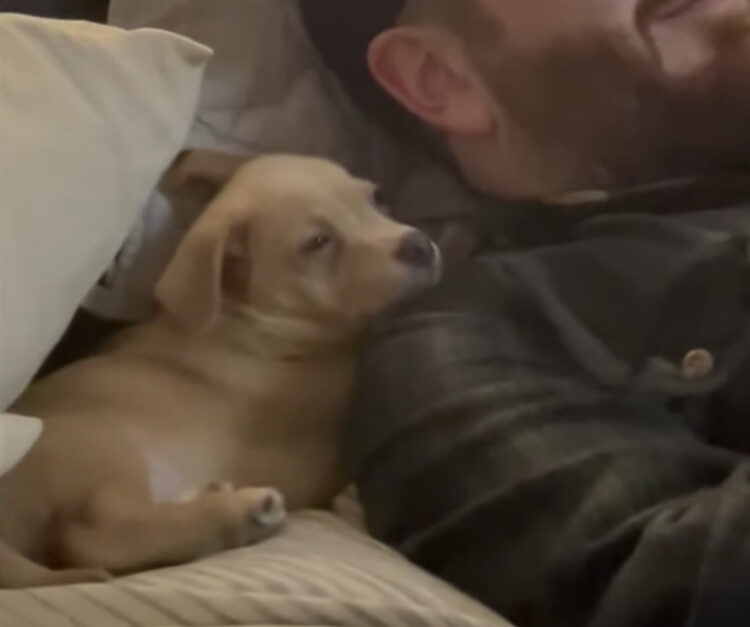 さらにぎゅーと飼い主さんに身を寄せて