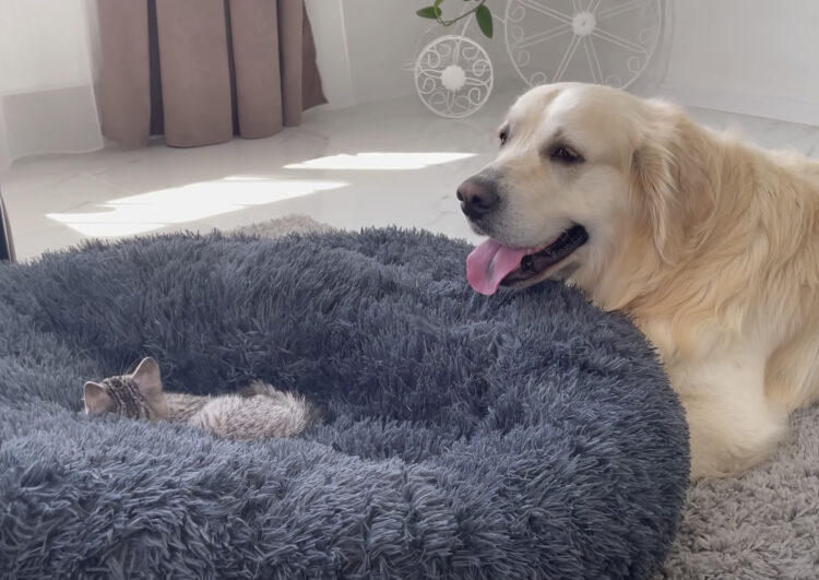 犬「どいてよ〜!」とベッドを引っ張ってみたり