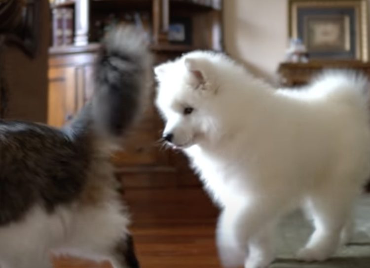 そんな子犬に、猫さんは時々イライラしているようだけど