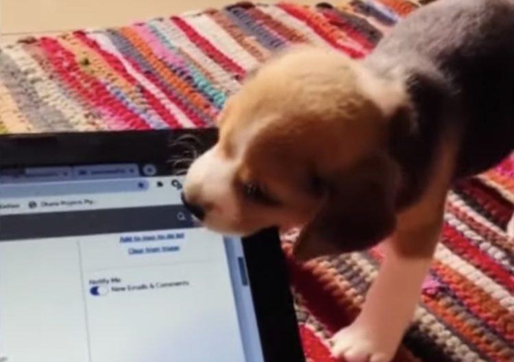子犬さんはパソコンが気になりすぎて、