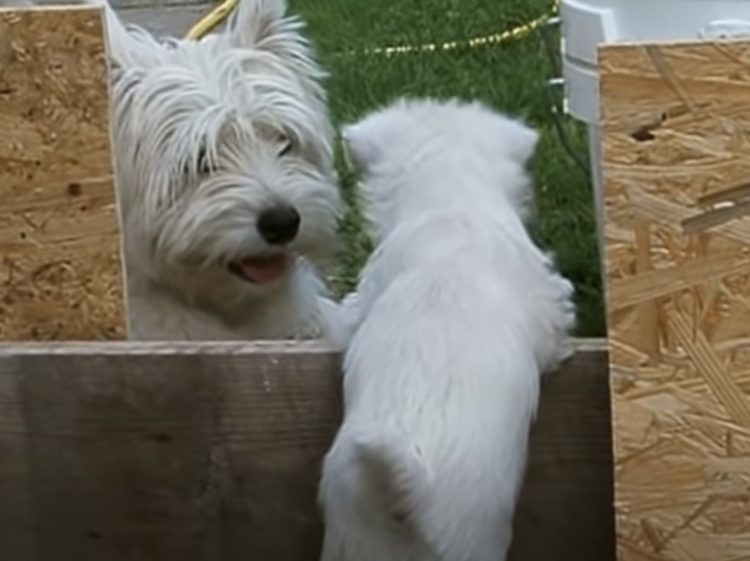 「過保護すぎるかしら…」子犬を手伝うか迷う親犬。