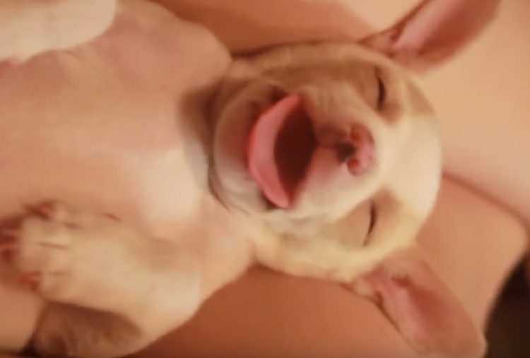 お腹丸出しで気持ち良さそうに寝ている子犬さん。
