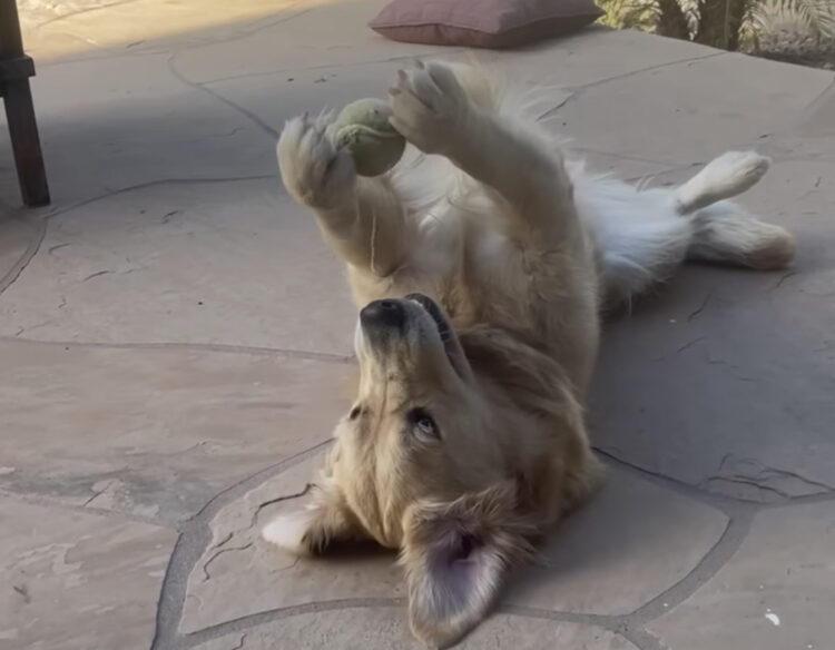 よく見ると手には大好きなボールを握っています。