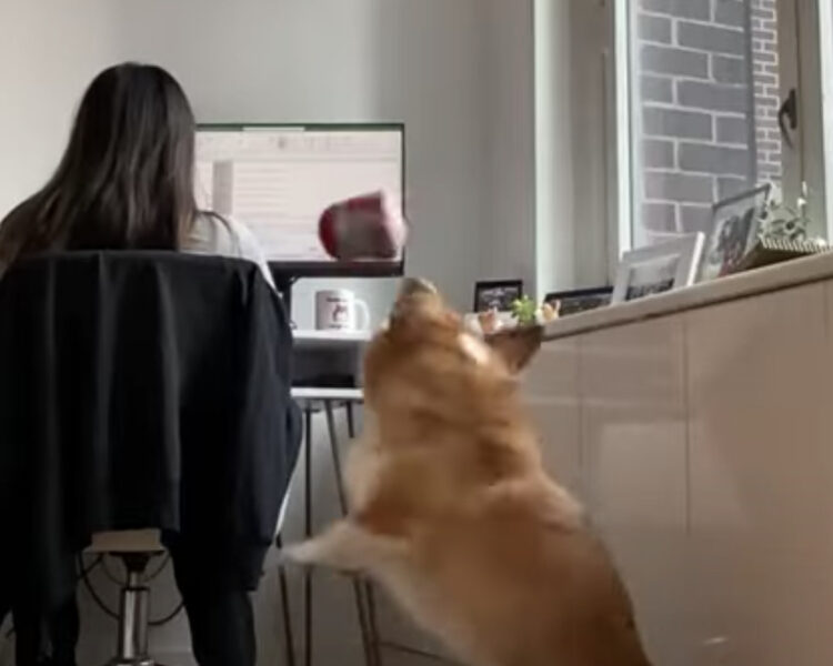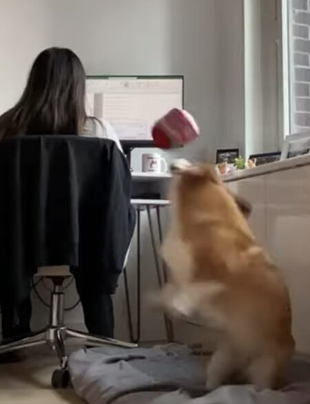 命中率100%! 遊んでくれない飼い主にボールで攻撃するコーギー犬。