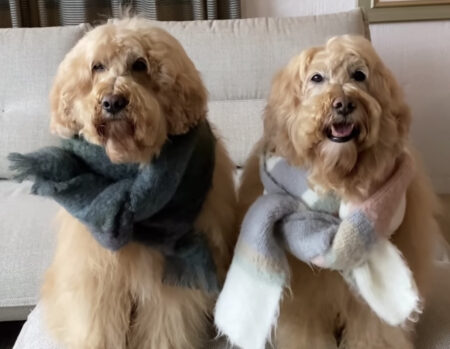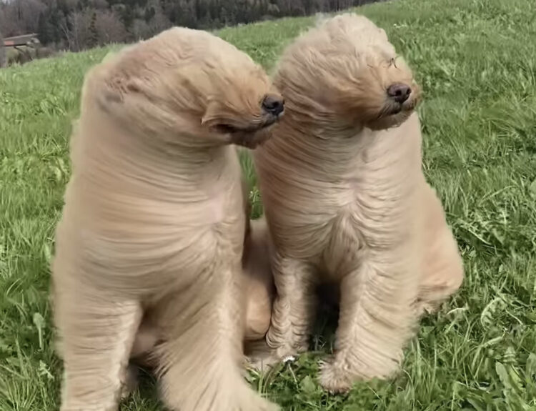 風に当たっている犬さんが二匹。