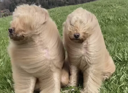 風が強すぎて犬さんの毛並みが…