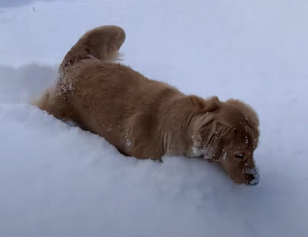 積もった雪に大喜びで、