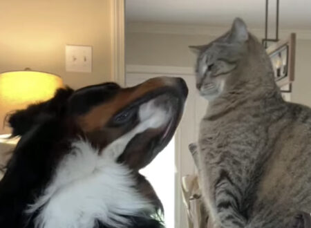 犬さん、猫に頭ポンポンしてほしくて甘える♪