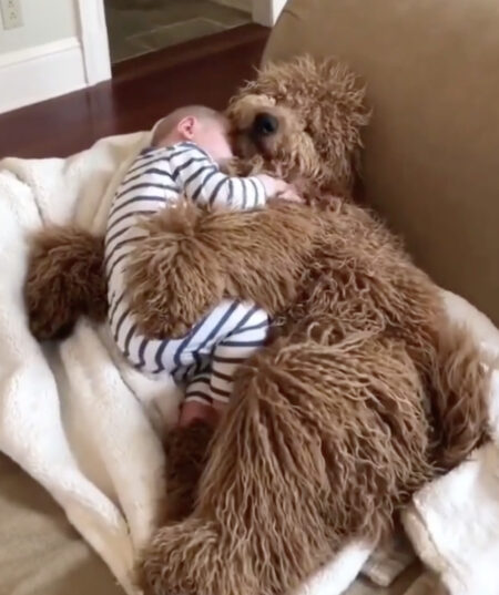 犬さんも赤ちゃんをハグっ!!