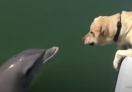 イルカさんに向かって「わんわん!!」