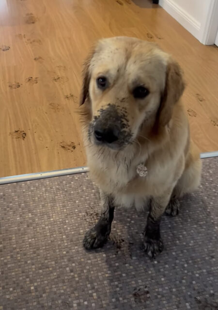 顔まで泥だらけ…!!