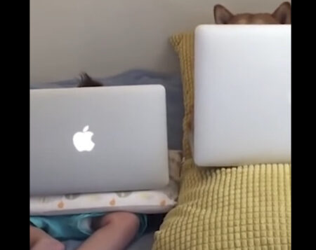 パソコンを見ているのは…犬さん!?