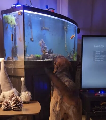 まさか魚と犬が仲良くなるとは、
