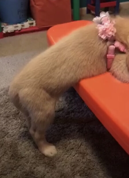なぜそこで(笑) 変な場所で寝ちゃった子犬さん。
