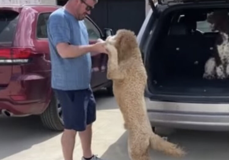 飼い主さんに促されて