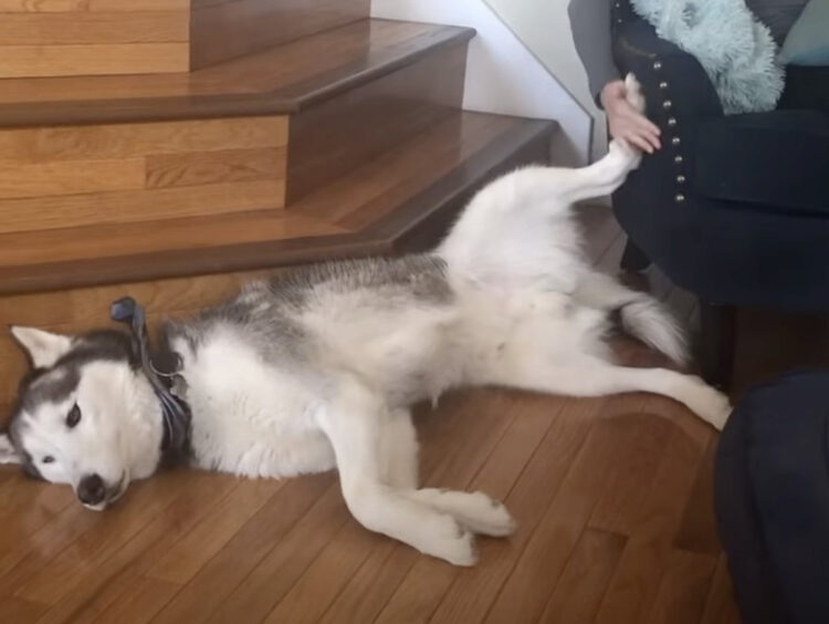 しょうがないわね〜と、犬さんの足をナデナデしてあげると