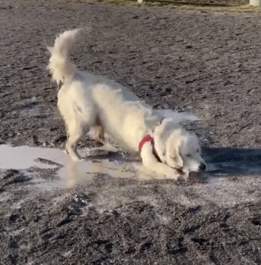 ちょっと水たまりに入るだけでは物足りず、
