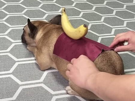 見て、このバランス感覚! 特技を披露してくれるフレンチブルドッグさん。