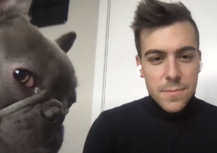 「誰としゃべってるのさ?」オンライン会議に参加したがるワンコ。