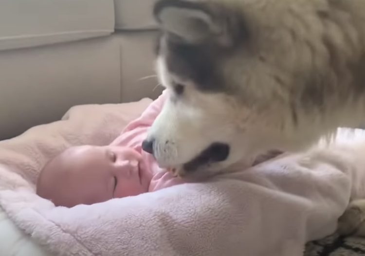 赤ちゃんのそばにやってきて、匂いをクンクン。