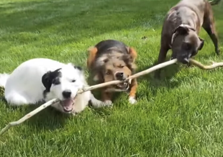 いつまでも勝負がつかずに引っ張り合いっこ。