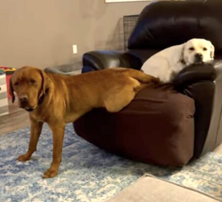ソファでまったりする2匹の犬さん。