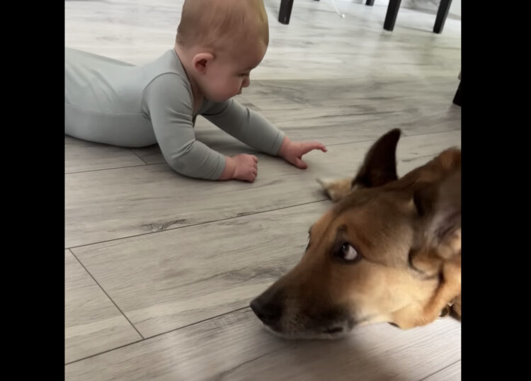 この日も、寝ている犬さんのそばに赤ちゃんがやってきて