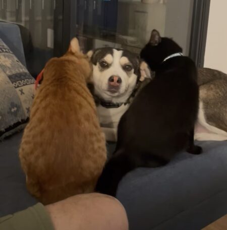 猫さんに挟まれて