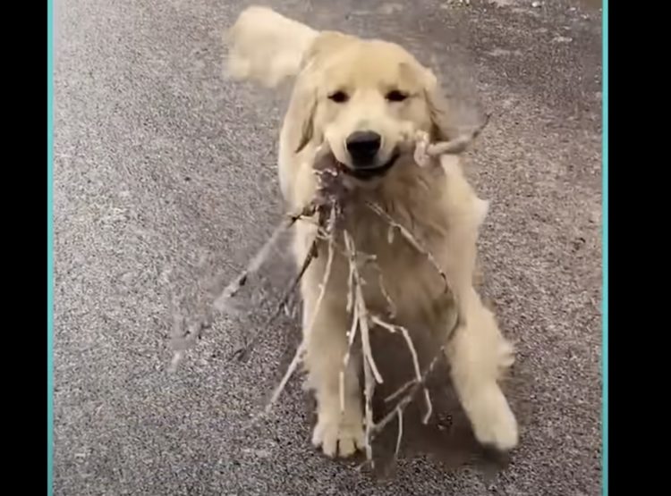 ワンコと言えば、散歩の途中で見つけた木の枝を