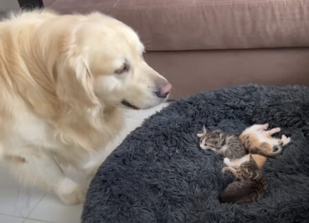 子猫たちに犬語は通じていないようで…