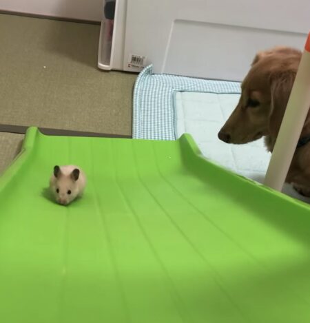 何度も挑戦するハムスターさんを