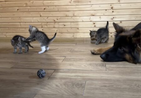 子猫さんたちを見つめています。