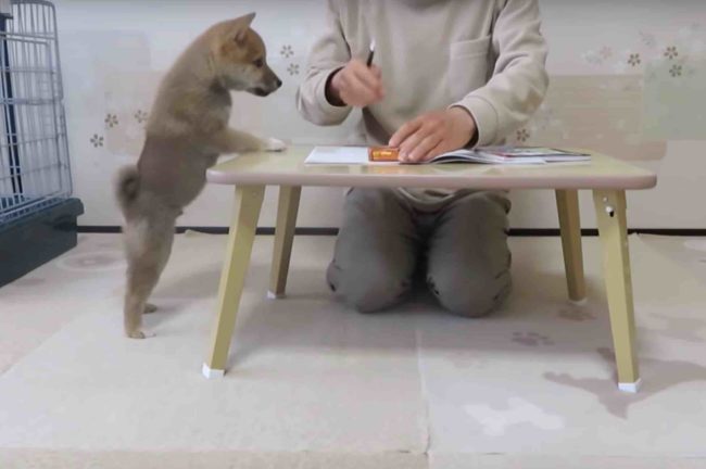 「なにしてるの〜?」と、机の上を背伸びして覗き込んたり、