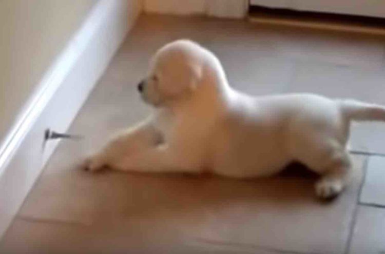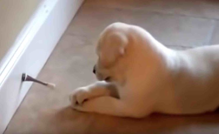 子犬ってよくドアストッパーに興味を持ちますよね。
