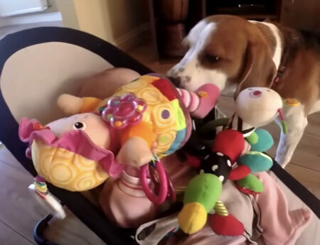 おもちゃをプレゼントして赤ちゃんに謝る犬さん。でもちょっと多かった!