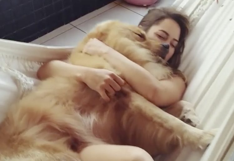 もふもふワンコをハグしながら