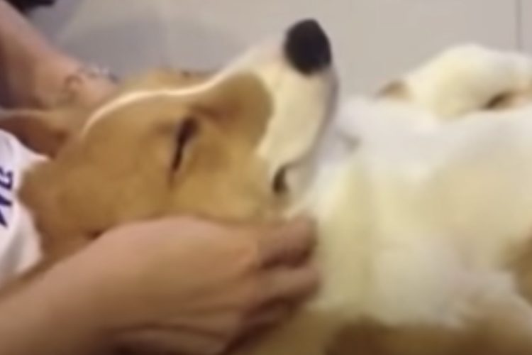 全身マッサージにうっとり〜気持ちよさそうなコーギーさん。