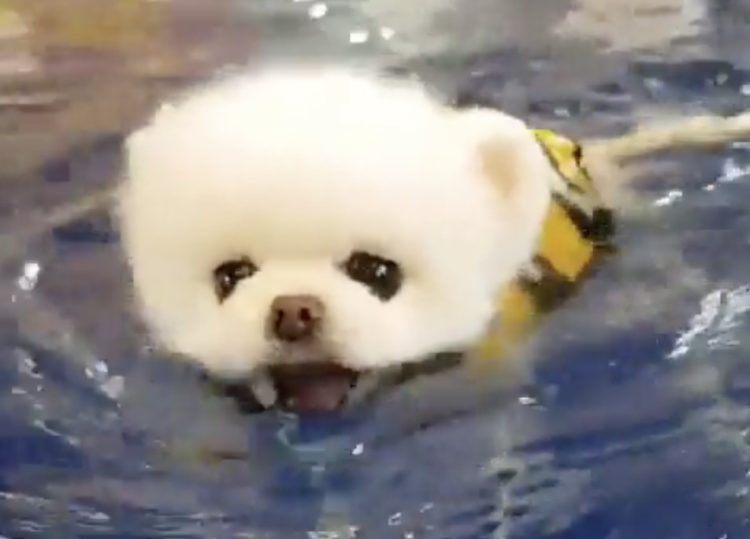 わたあめが泳いでいるみたい!犬かきに初挑戦の子犬。