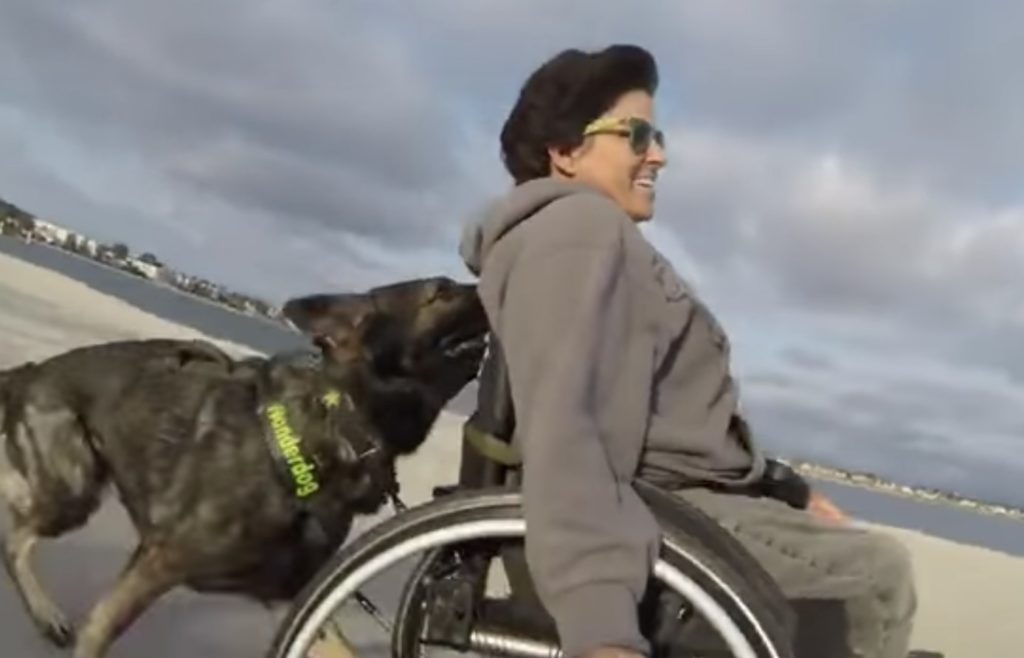 さぁ、一緒に行こう!車イスを押してくれる愛犬とのお出かけ。