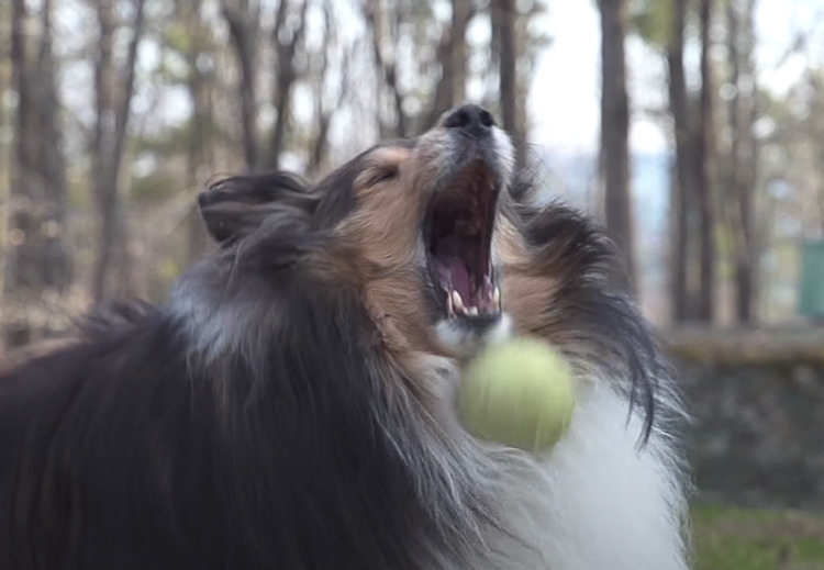 テニスボールを見つめている犬さん。 彼には今とっても苦労している事が... それは、犬の遊びの定番、 「ボールキャッチが苦手」という事! そんな犬さんの努力の総集編。 犬「今日こそ、やってやりますよ」と カッコよくドキュメンタリーのように 映像が... -