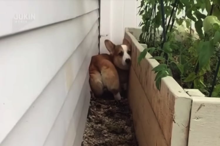お尻が挟まっちゃったコーギー犬、脱出するべく…!