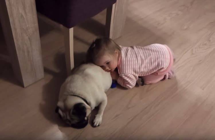 ふぁ!女の子がお尻に…優しいパグさんの反応は?