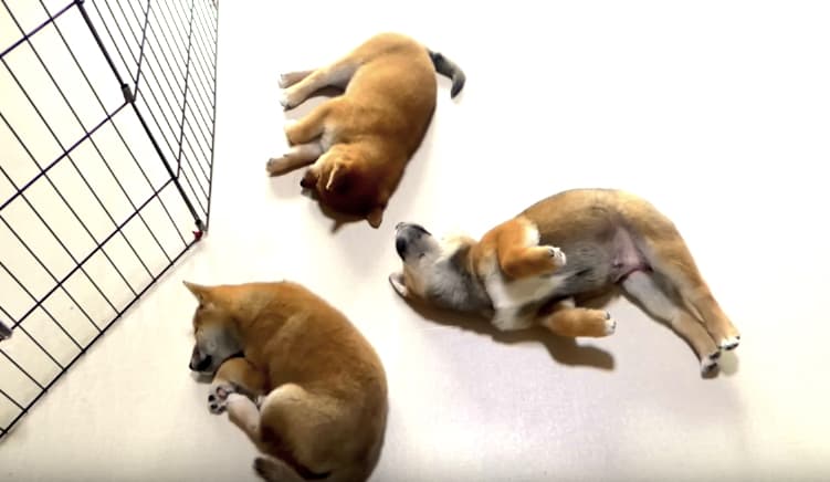 柴犬が、落ちてる?!お昼寝中の子犬部屋に入ってみた。