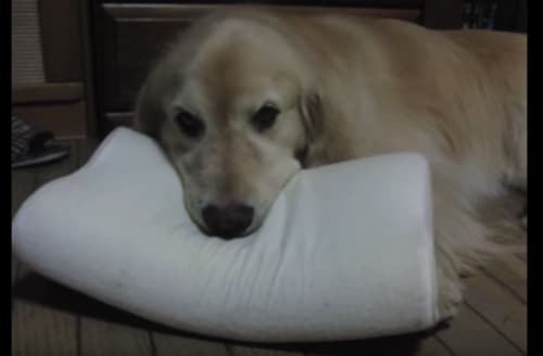 ワンコ「やっぱこれじゃないとねぇ〜」愛用枕は低反発?!