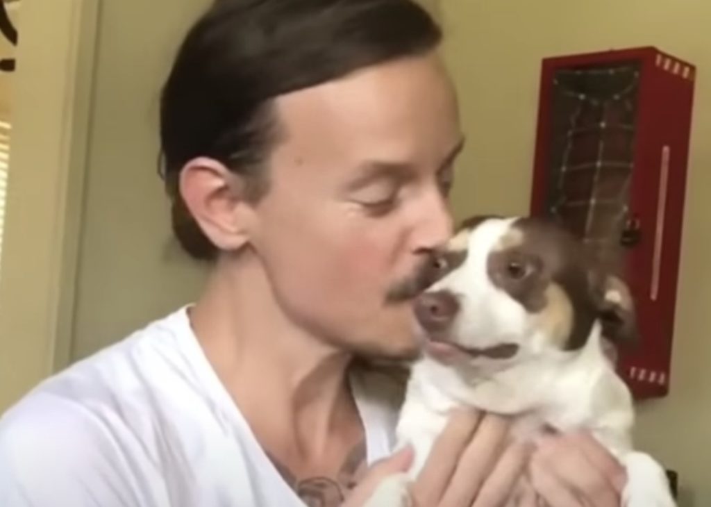 飼い主さんにキスされる犬、驚きすぎて表情が…