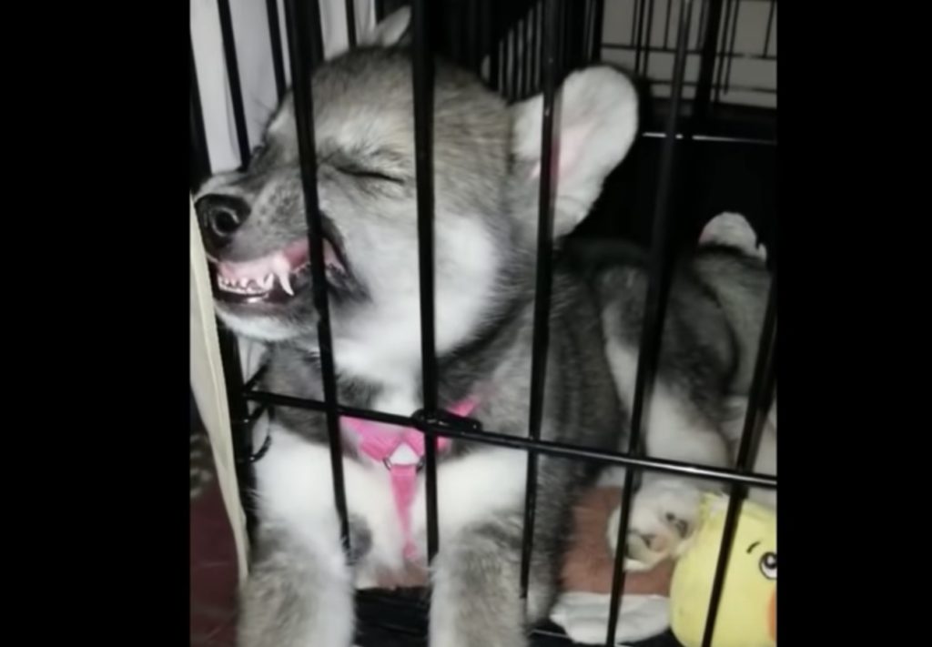 ハスキーの子犬、お顔が潰れちゃうほど寝相が悪い!