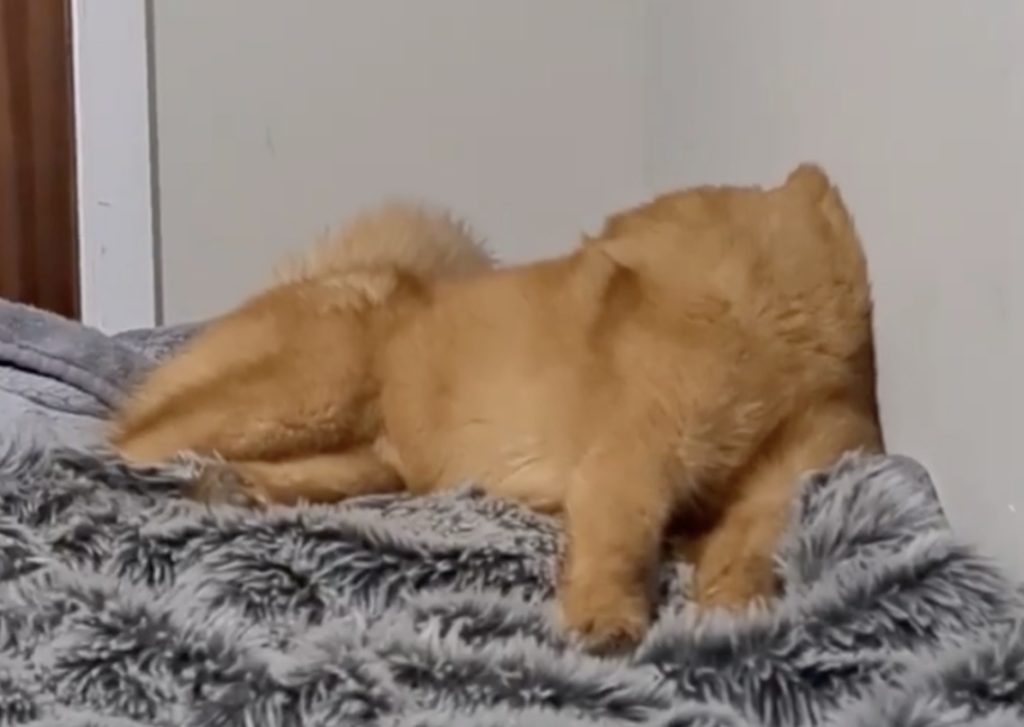 ハスキーの子犬、顔が変わるほど寝相が悪かった。