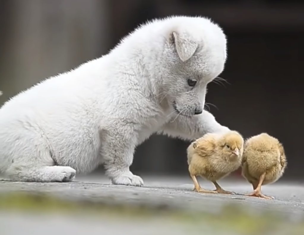 たくさんのヒヨコさんを見つけた子犬さん。 「ねぇねぇ〜ヒヨコさん、遊ぼう〜。」と 手でヒヨコさんを捕まえようとしたり、 甘噛みして遊びたい様子。 なんだかほんわかする姿なのでした。 出典:Viral Paws