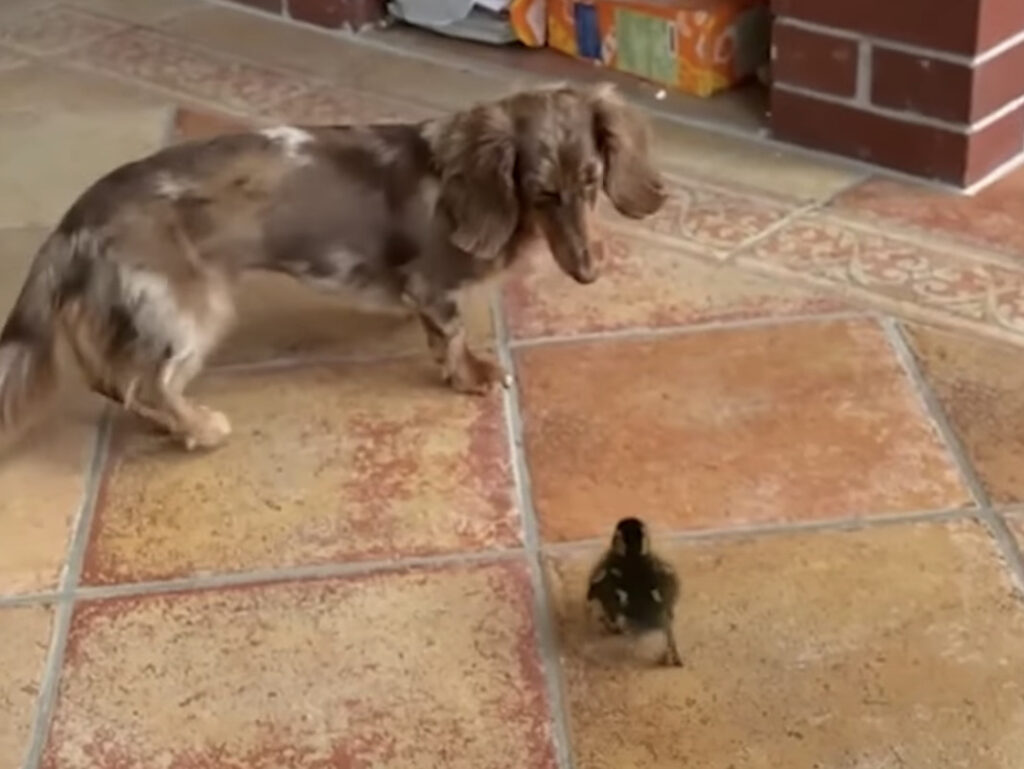 犬「何この小っちゃいの〜!」 アヒルの子にタジタジ!
