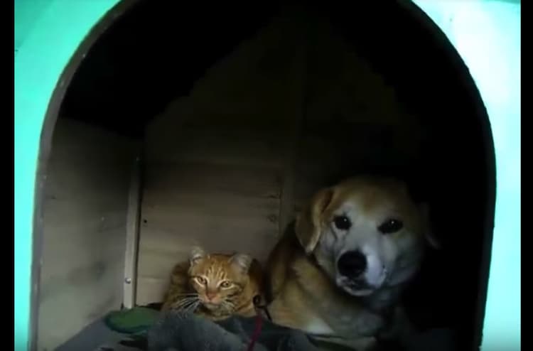 犬のシダさんのお家に住み着いたノラ猫さん。 いつの間にか仲良くなって、気づけばお子さんも。 (もちろんパパは違うけれど…) 寝るときも、どんな時も、いつでもぴったり 今日もみんなでお散歩に行くのでした。 -